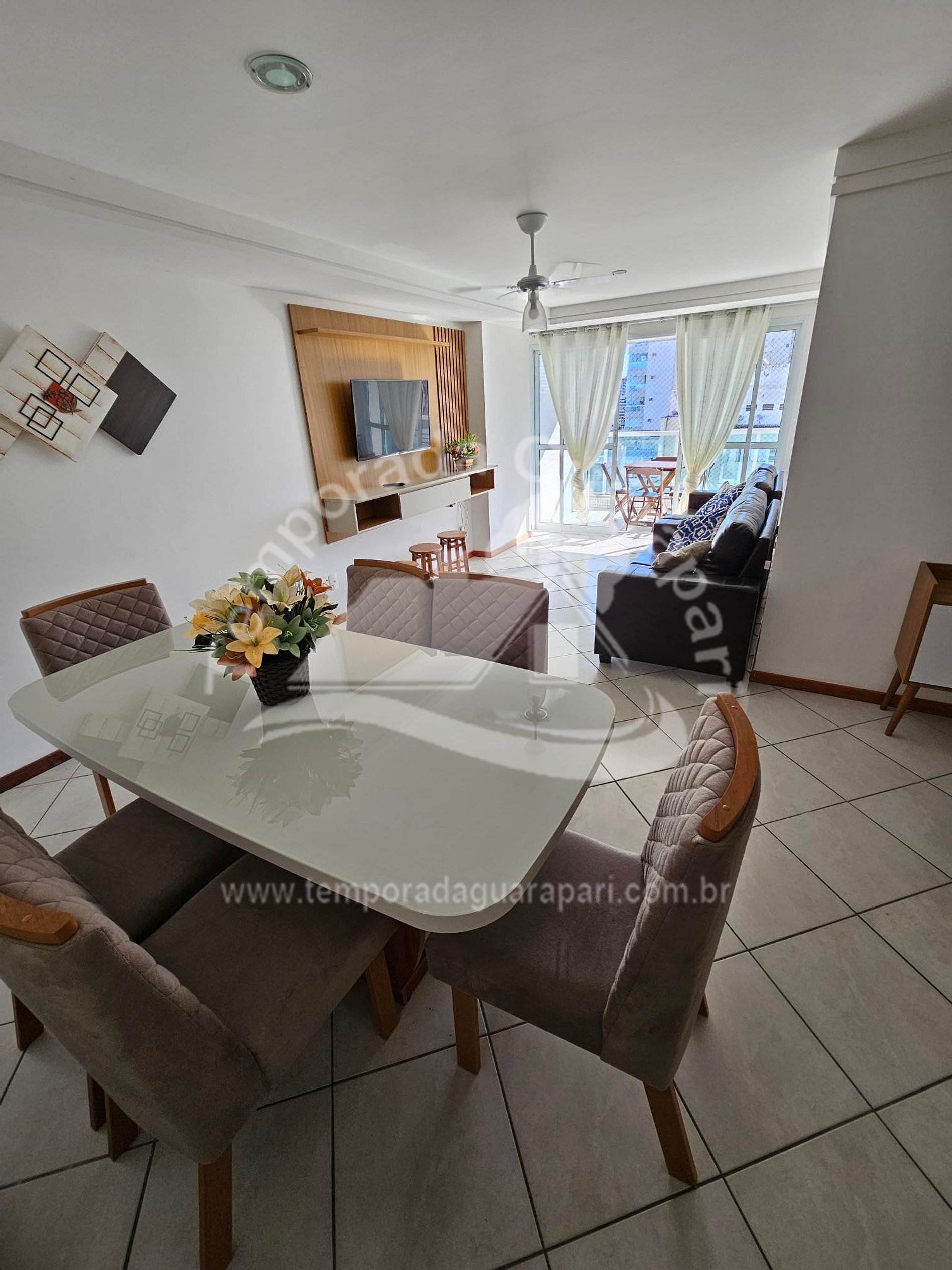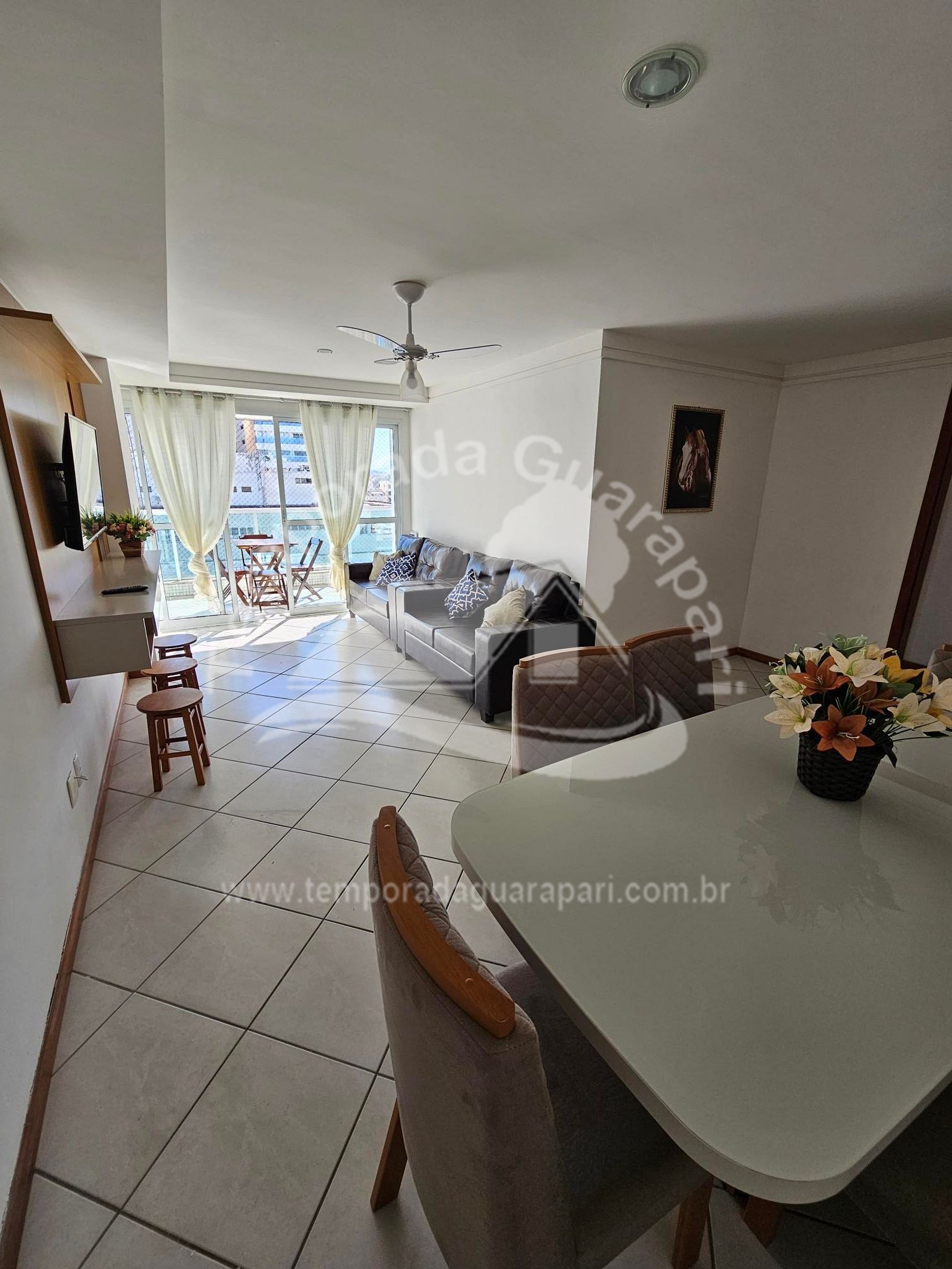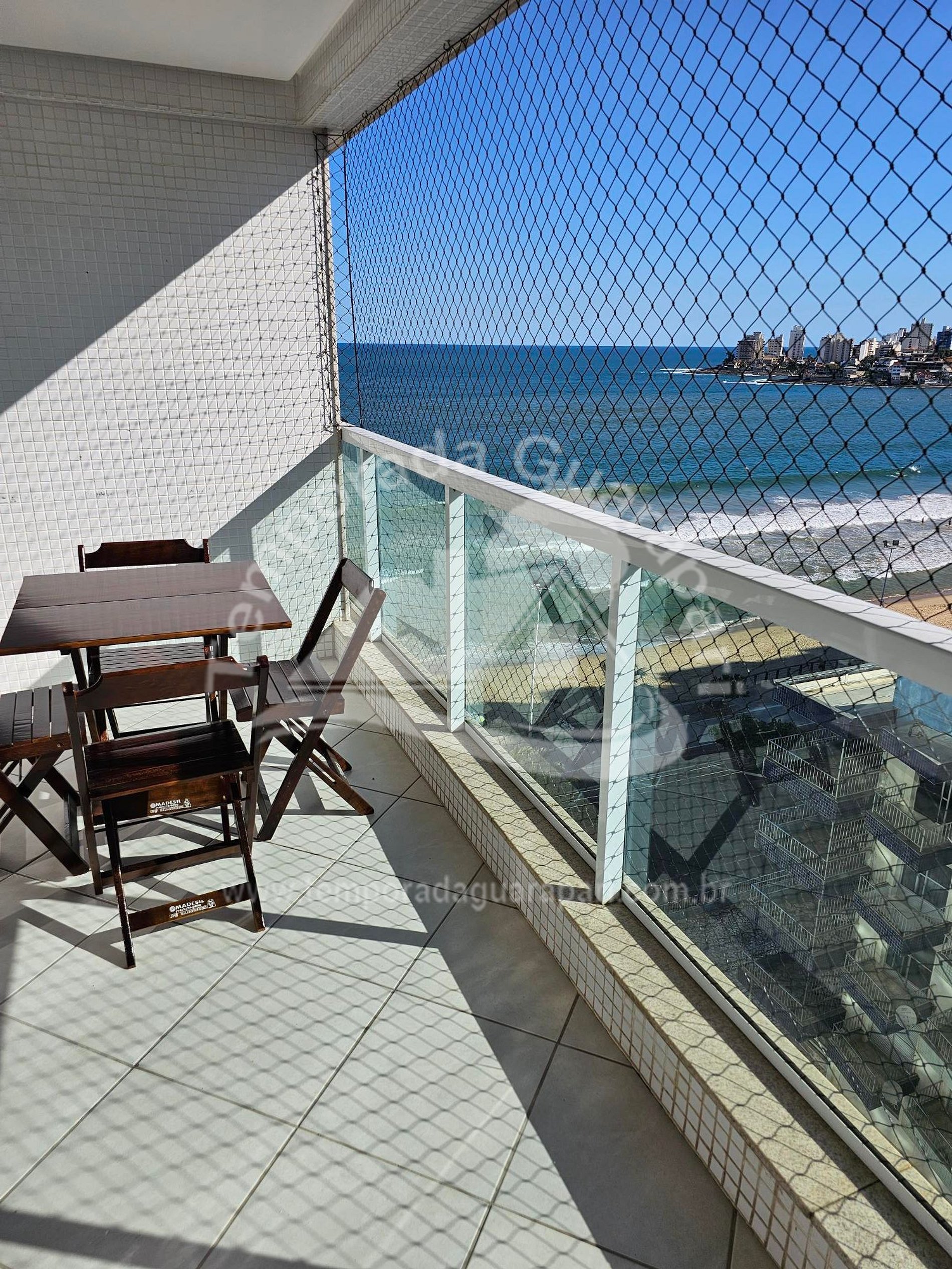 = Sala ampla , com sacada vista lateral pro mar .