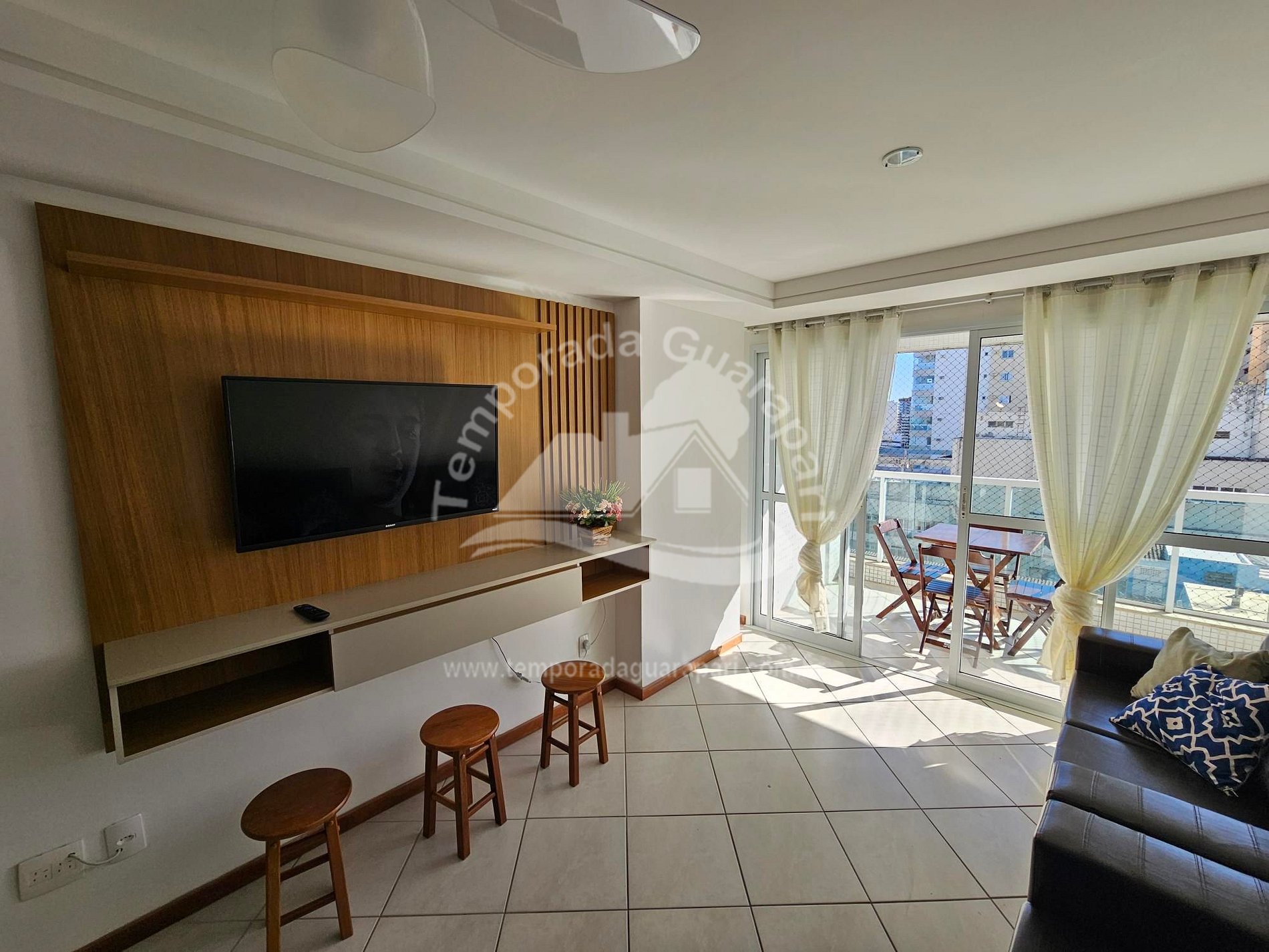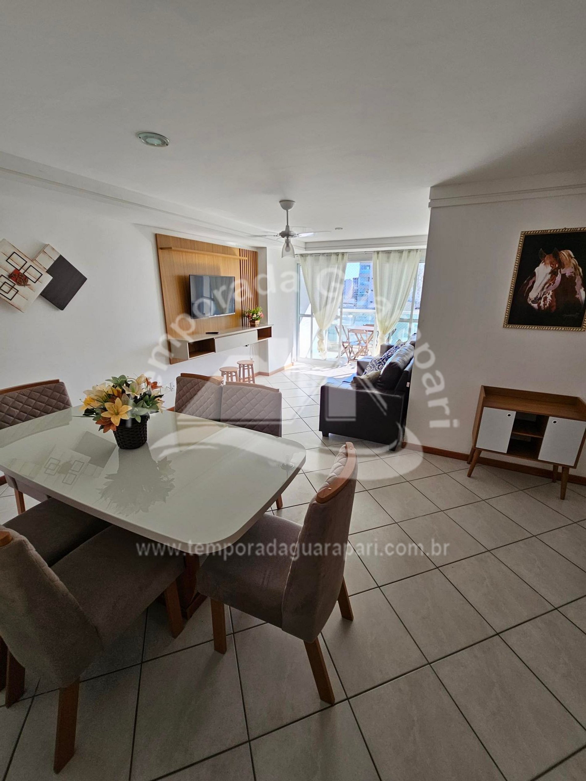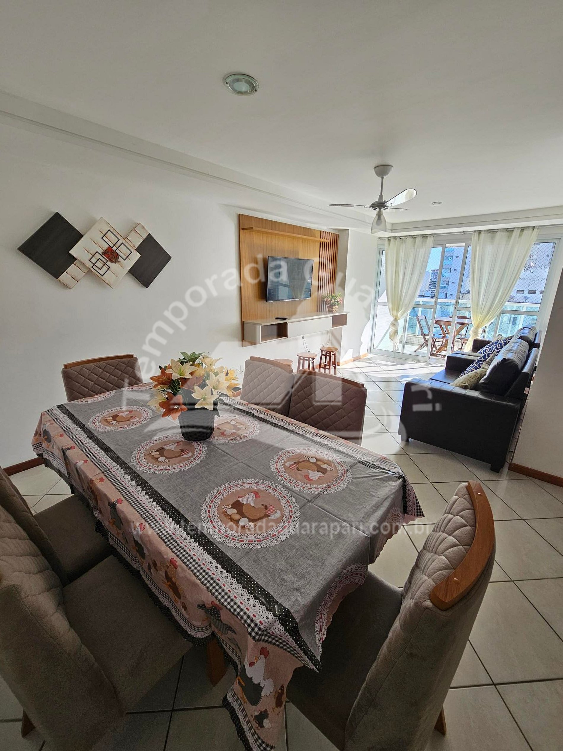 = Sala ampla , com sacada vista lateral pro mar .