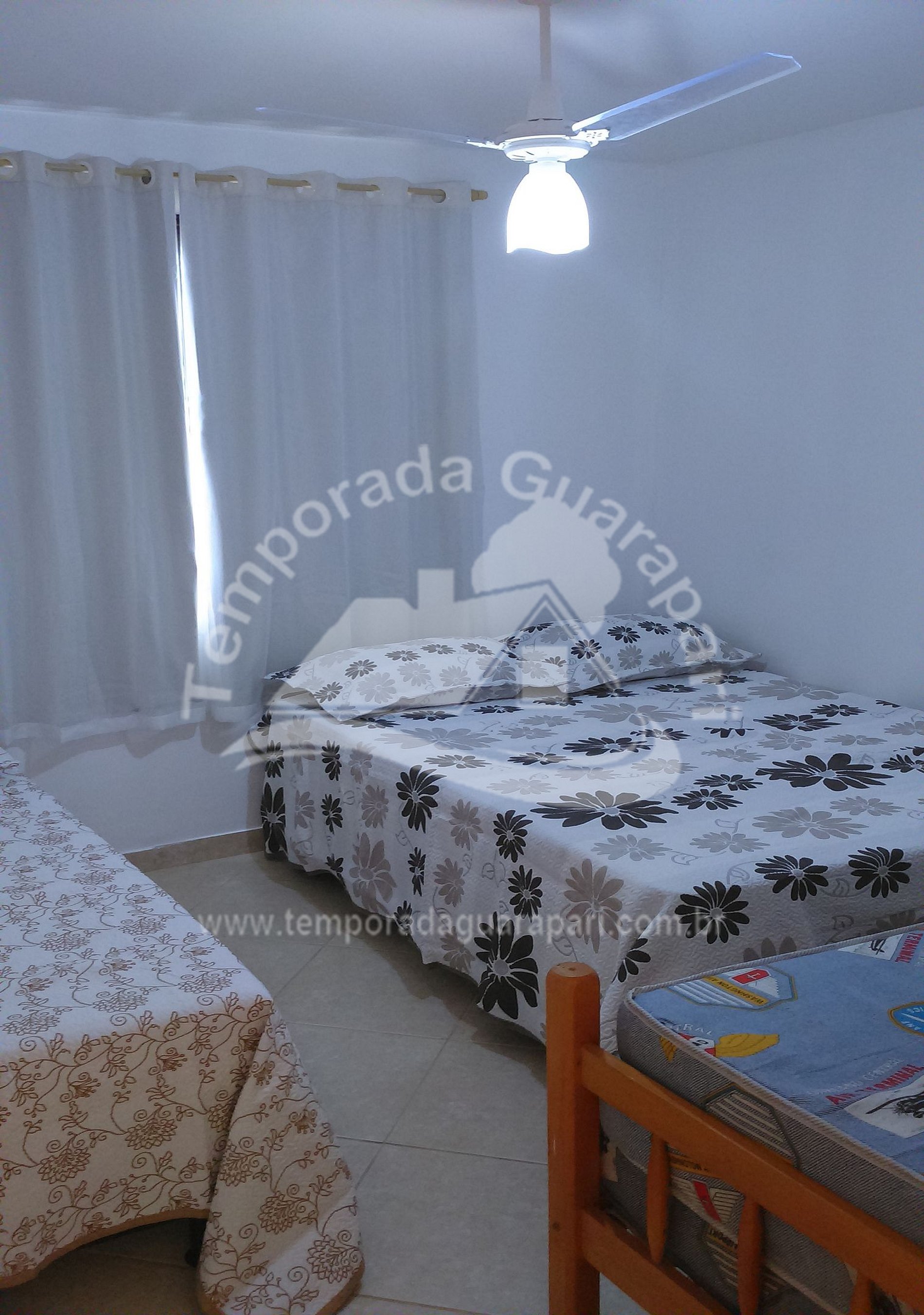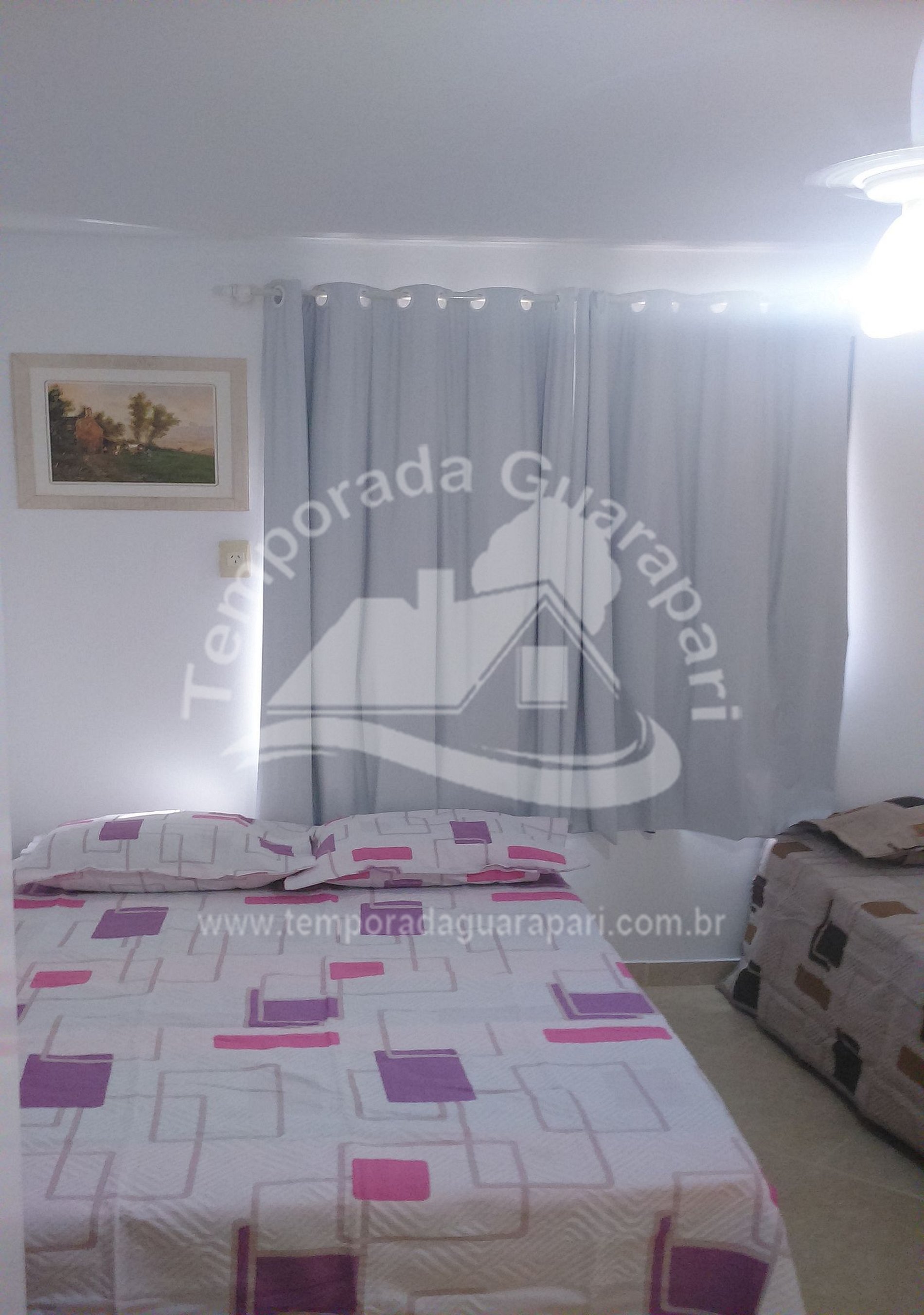 = 2 Quartos, Sendo 1 Suíte com ar condicionado, e ventilador de teto no outro quarto para até 06 pessoas já com crianças de todas as idades.