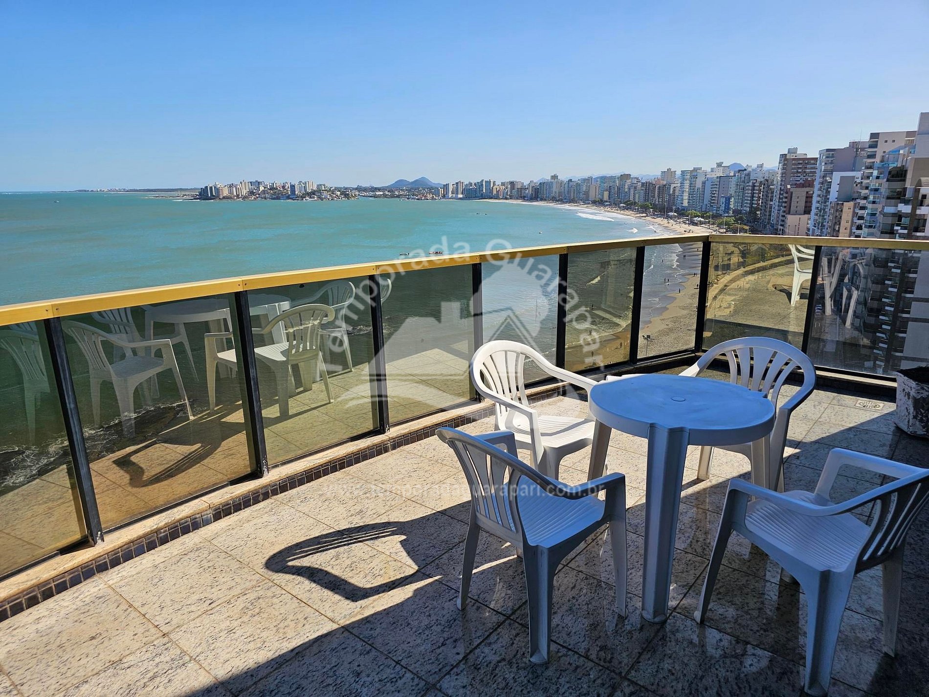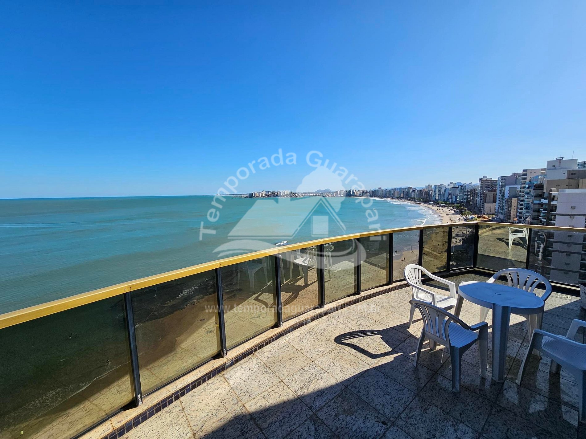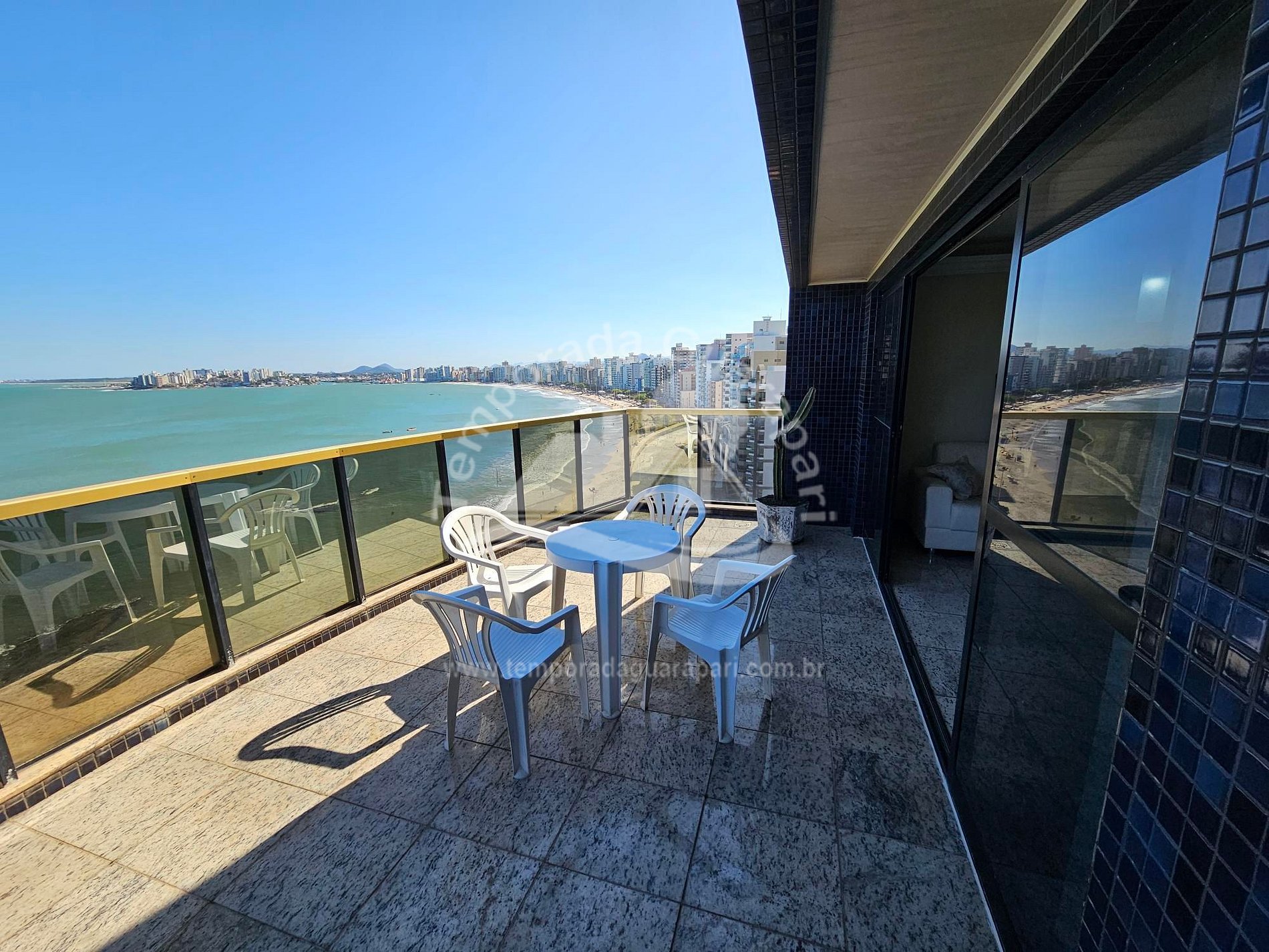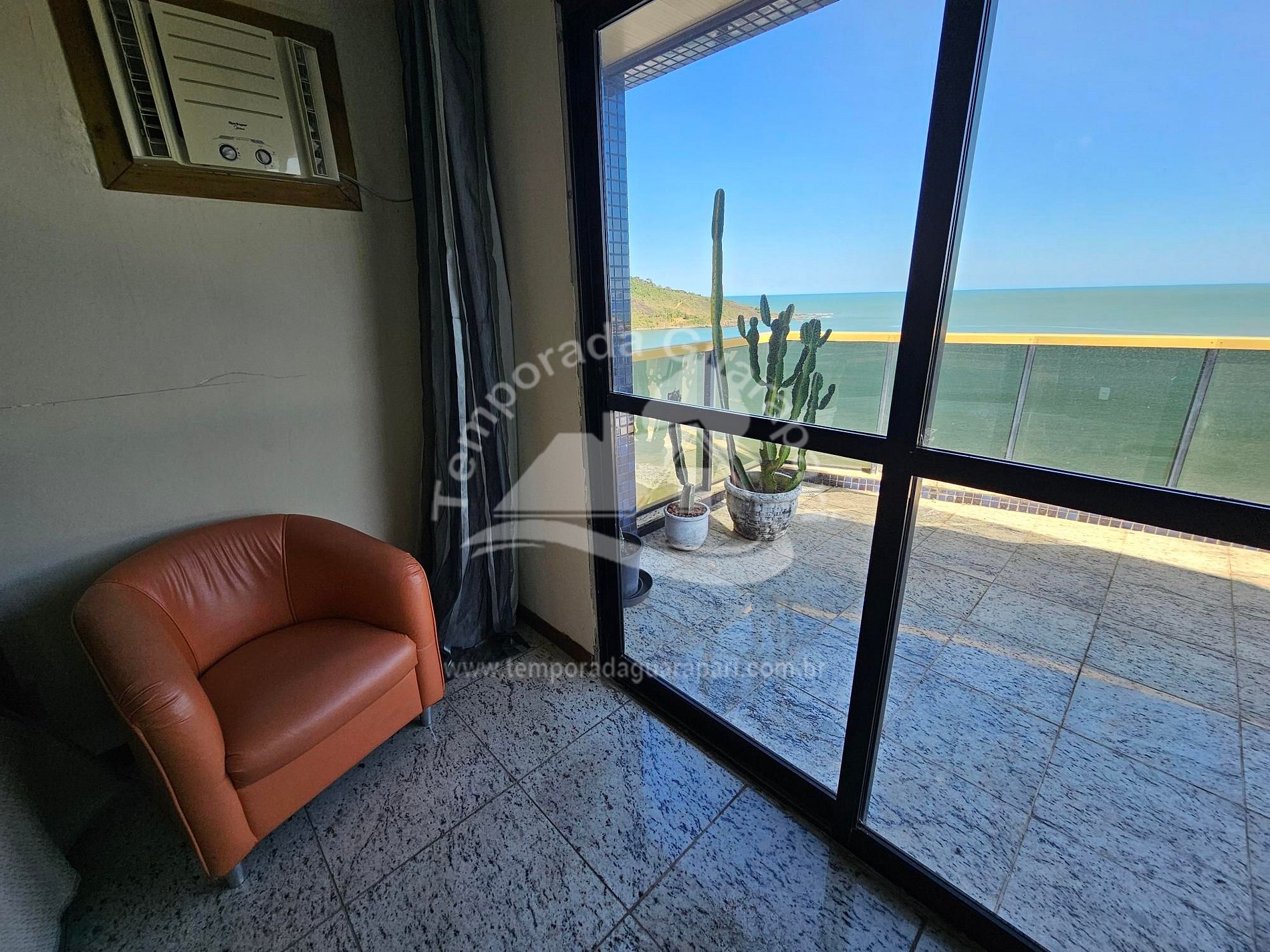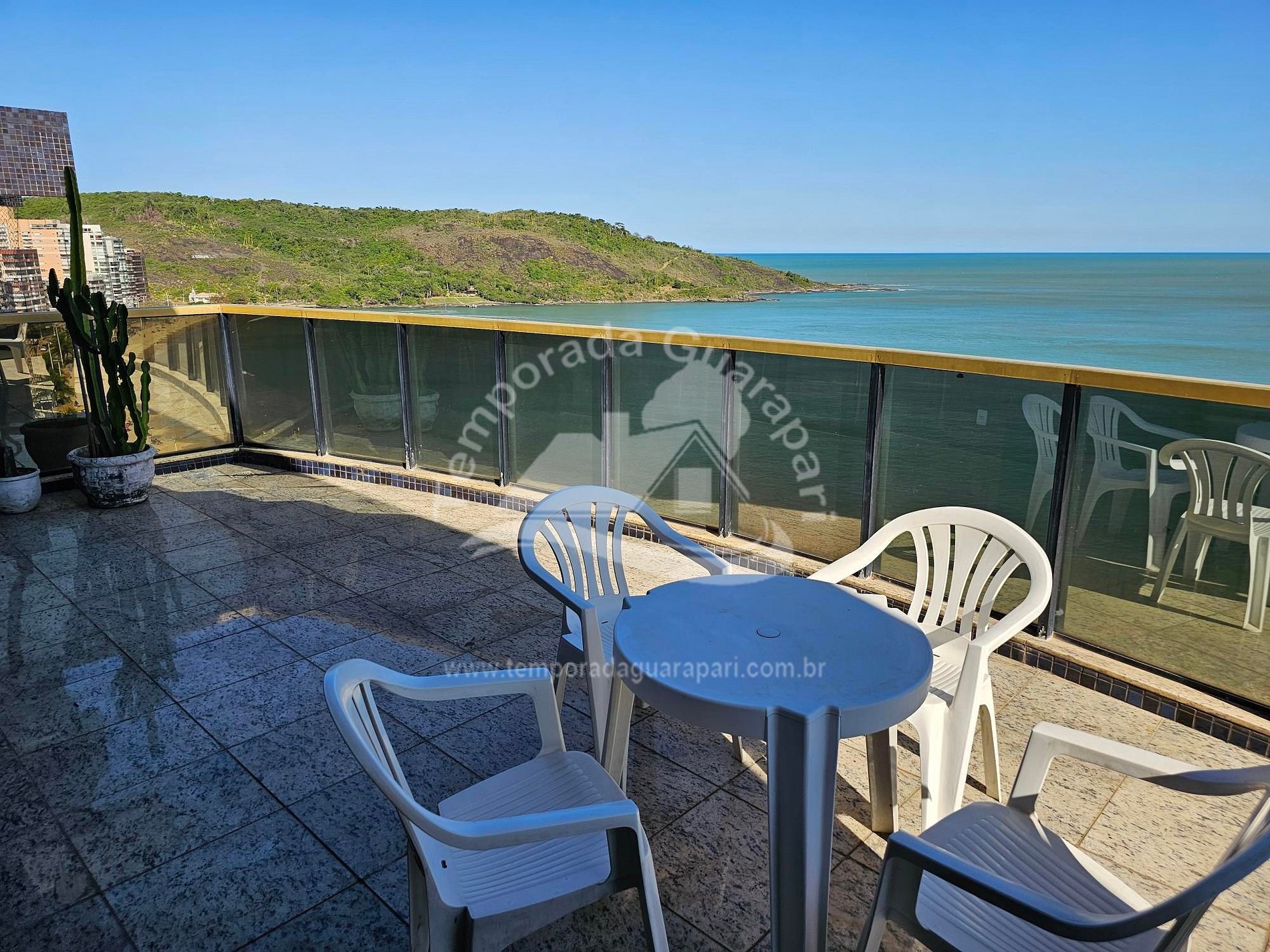 = Varanda com vista total da praia .
