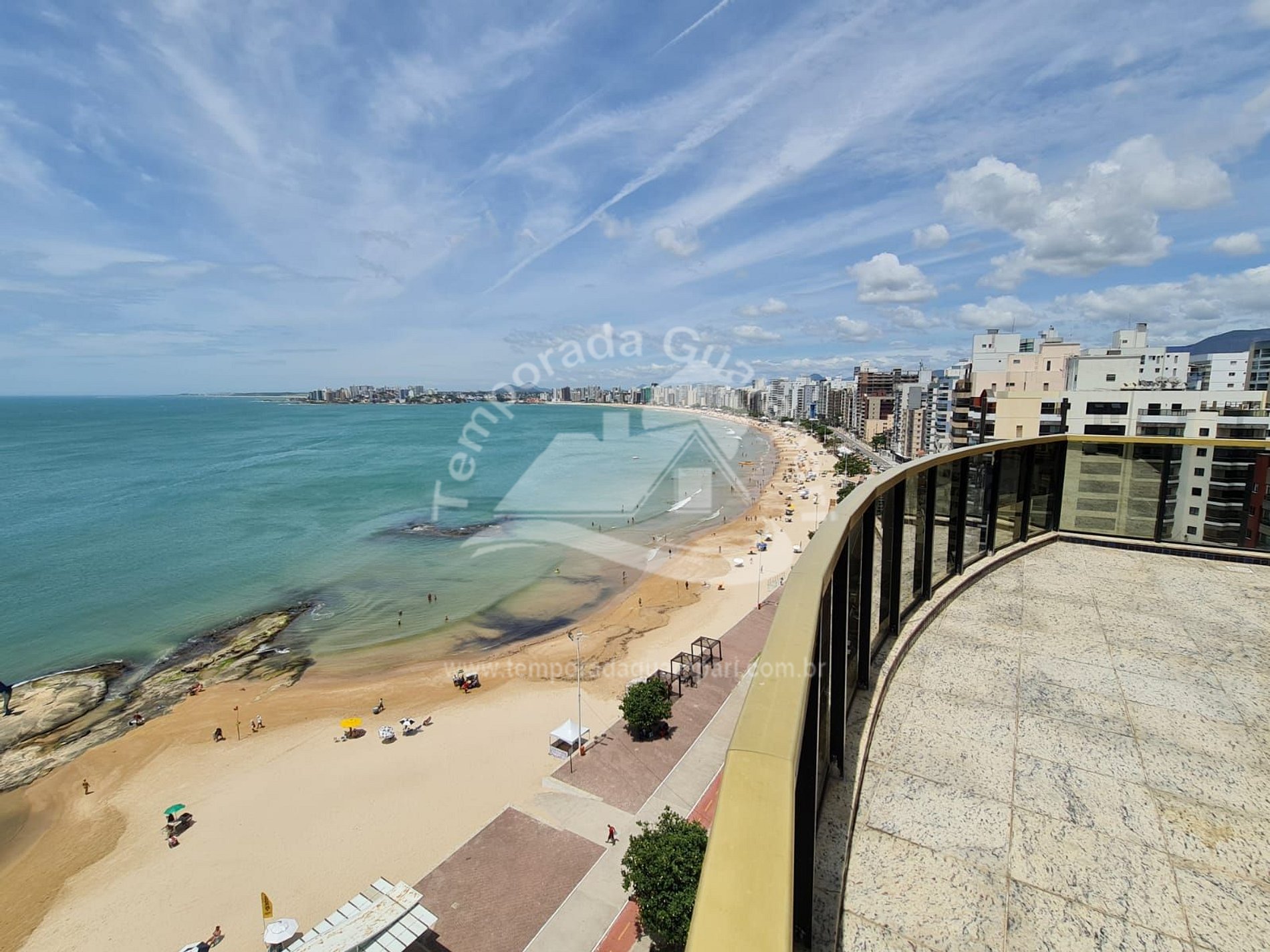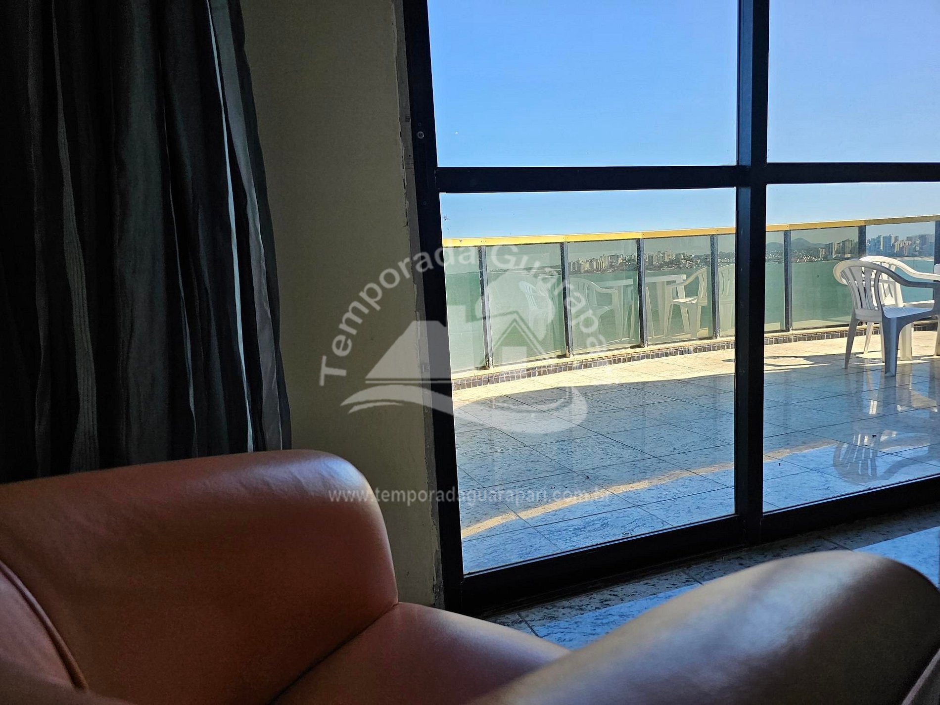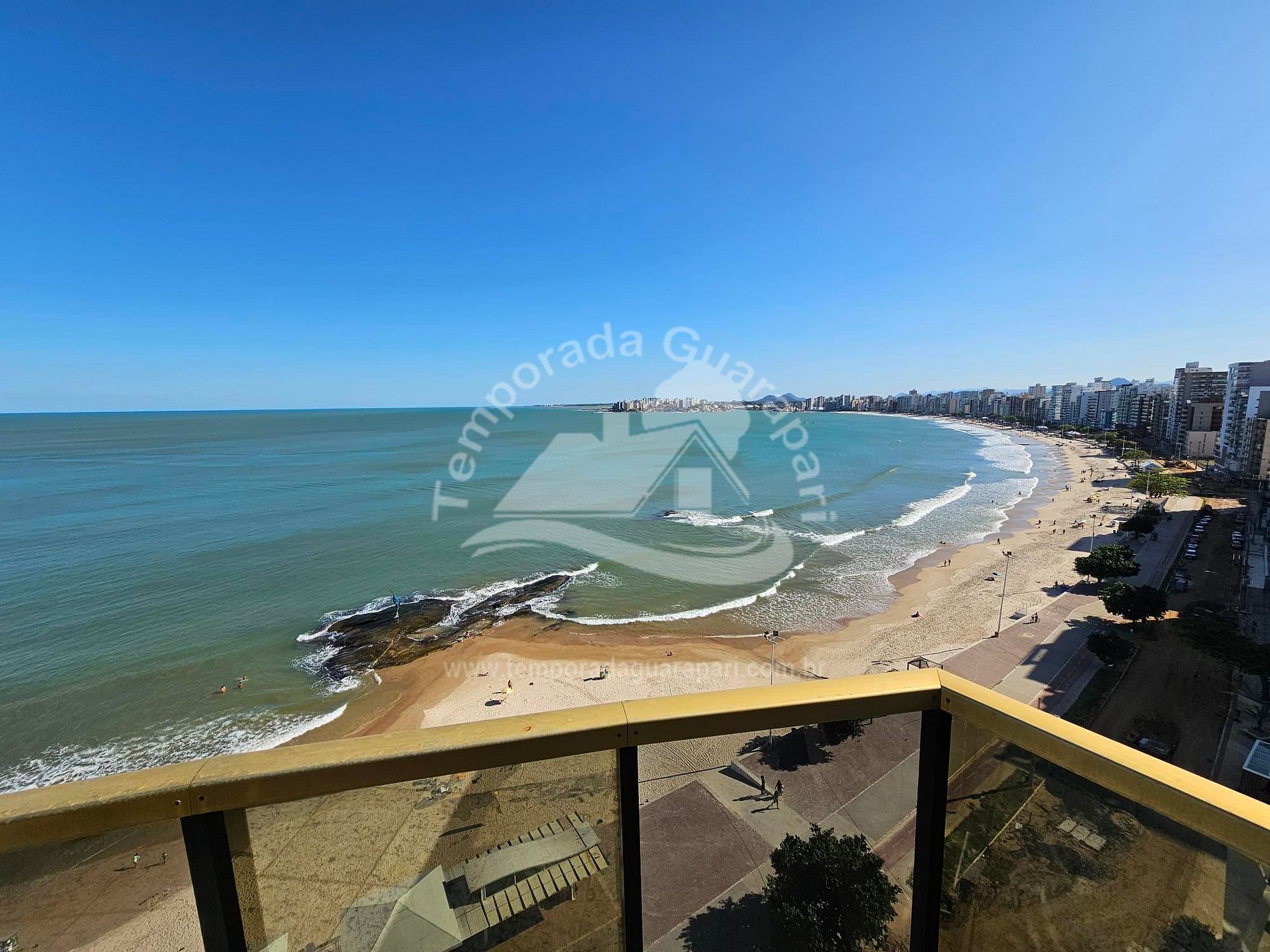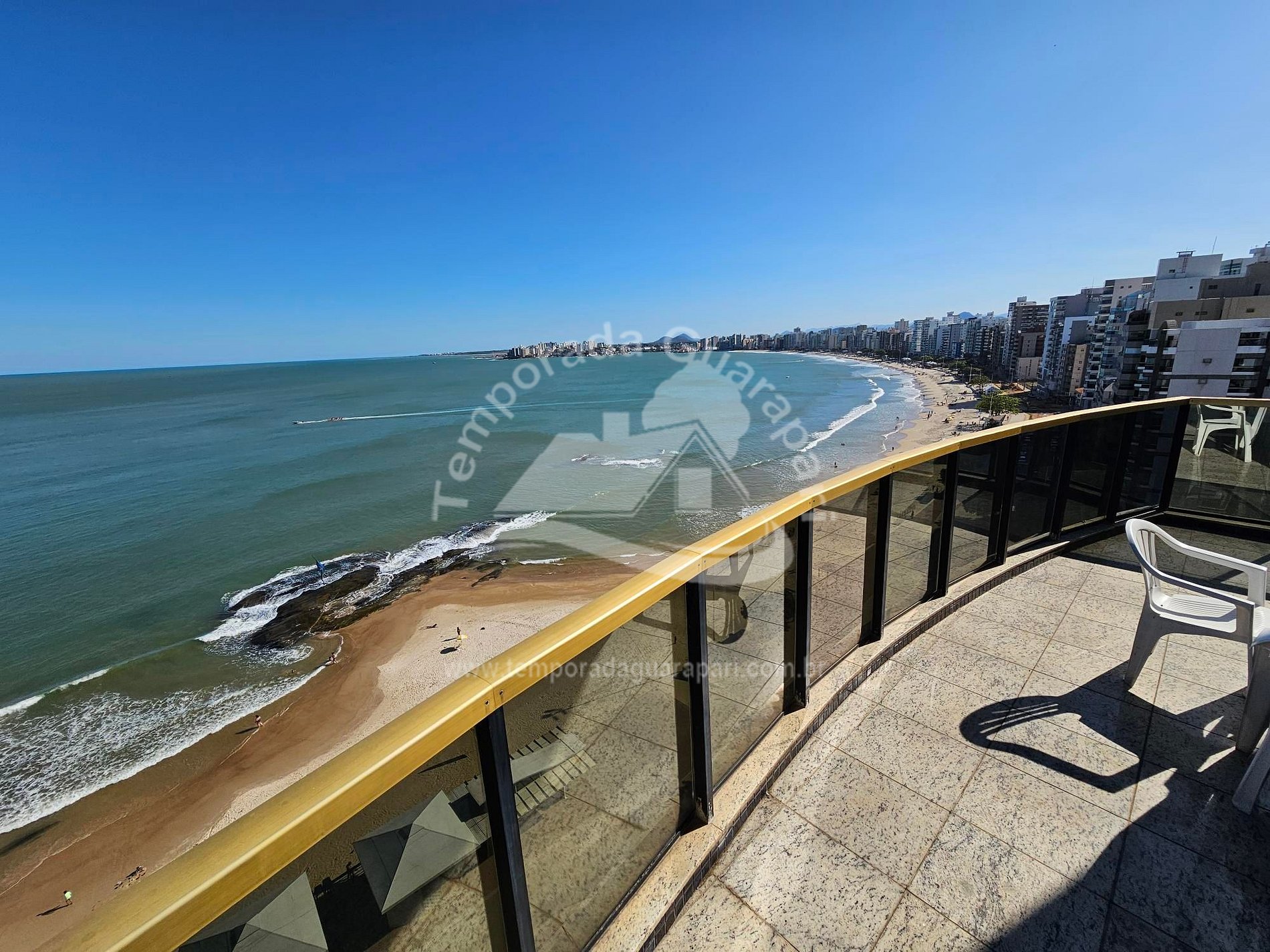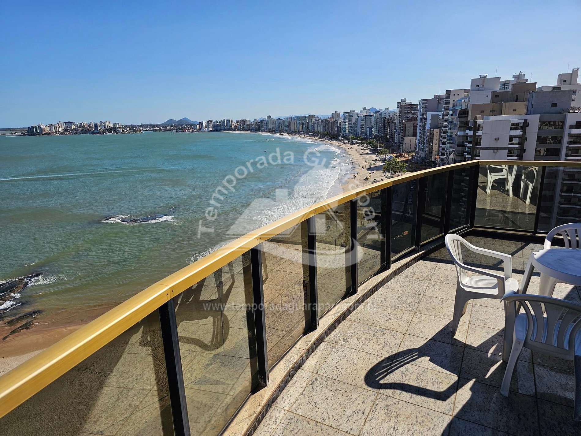 = Varanda com vista total da praia .