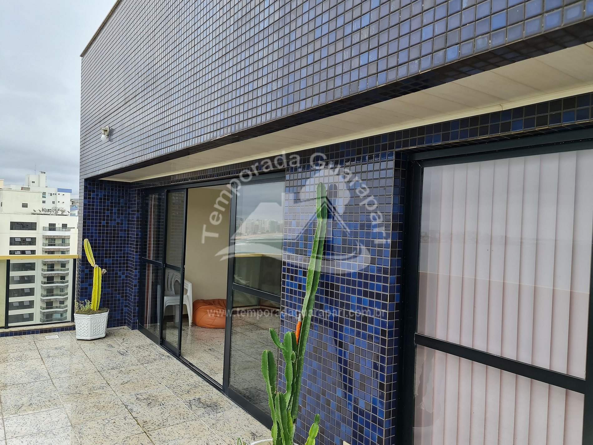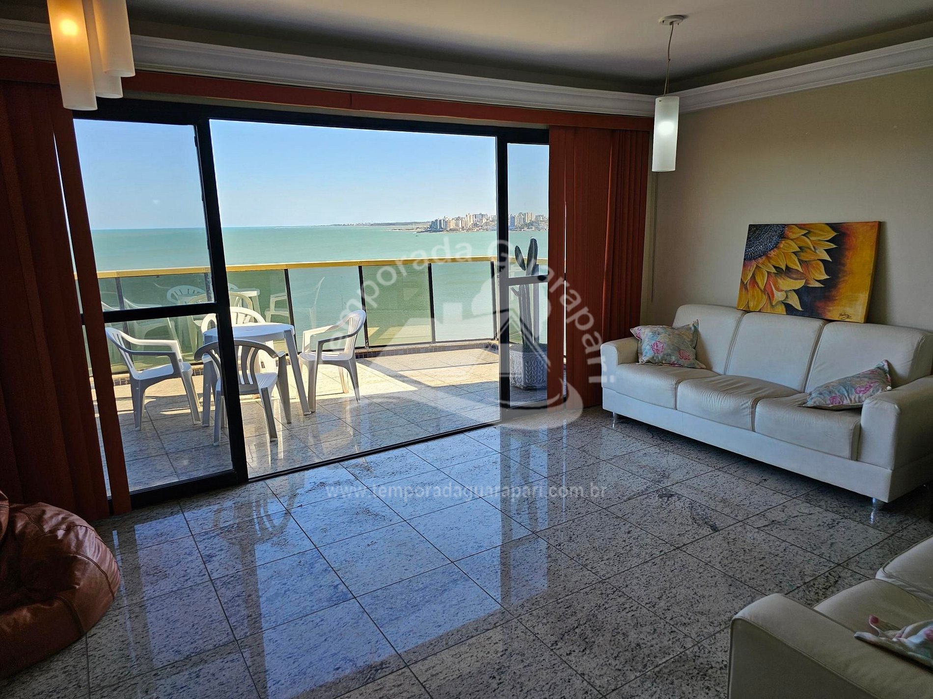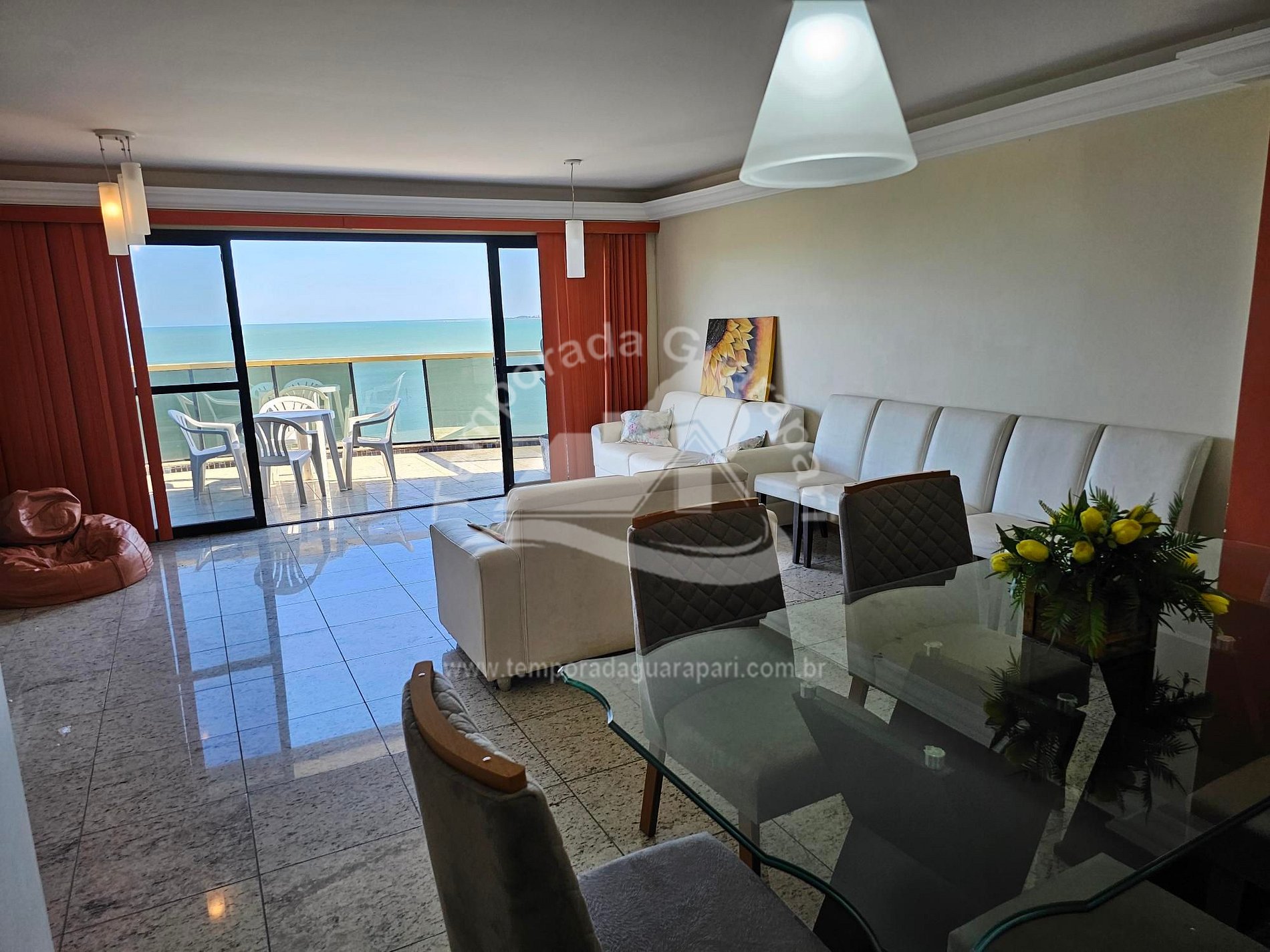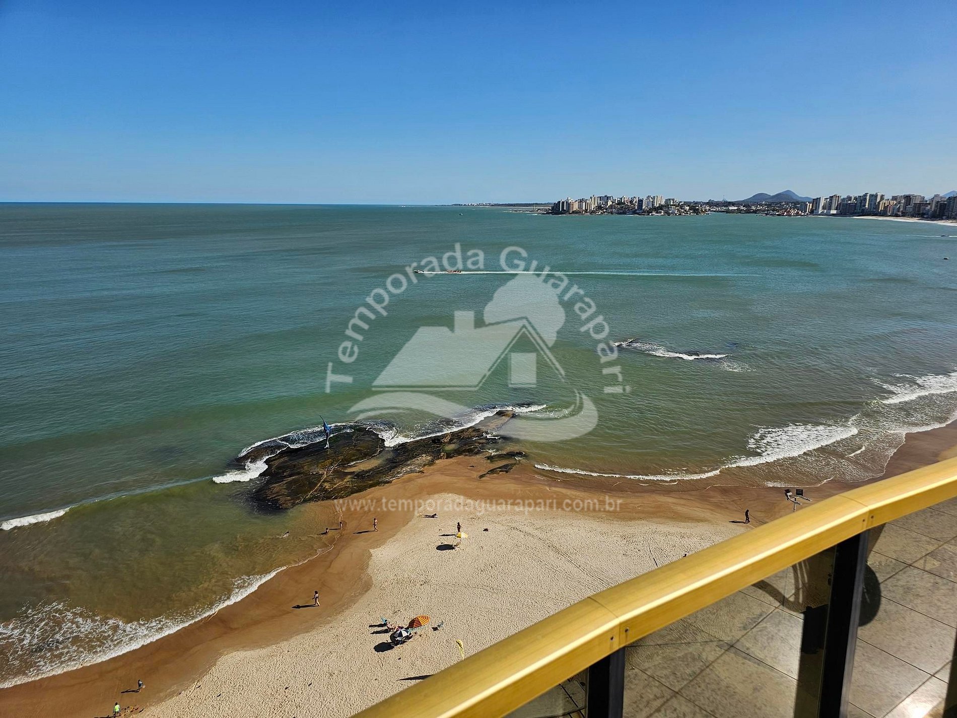 = Varanda com vista total da praia .