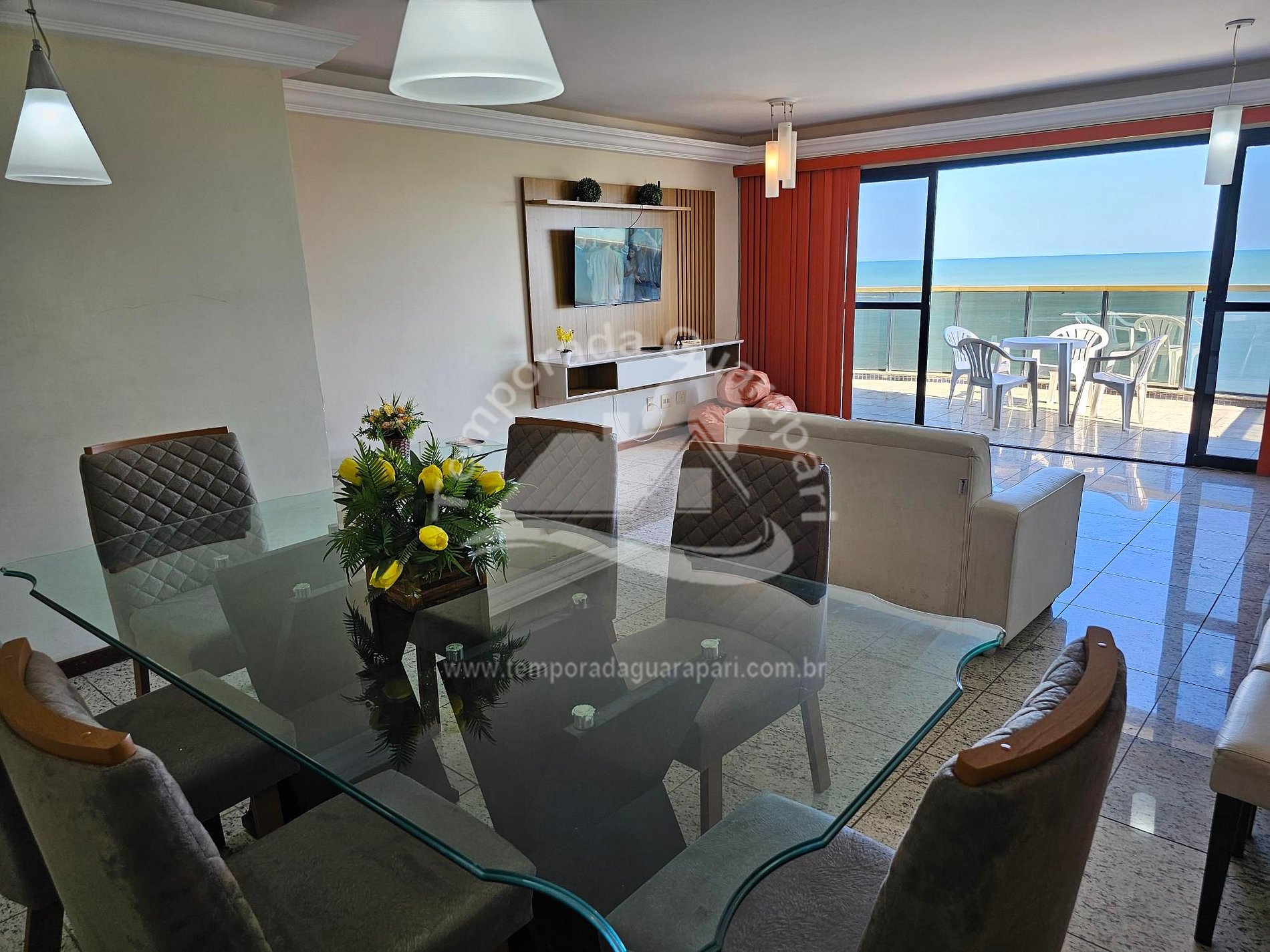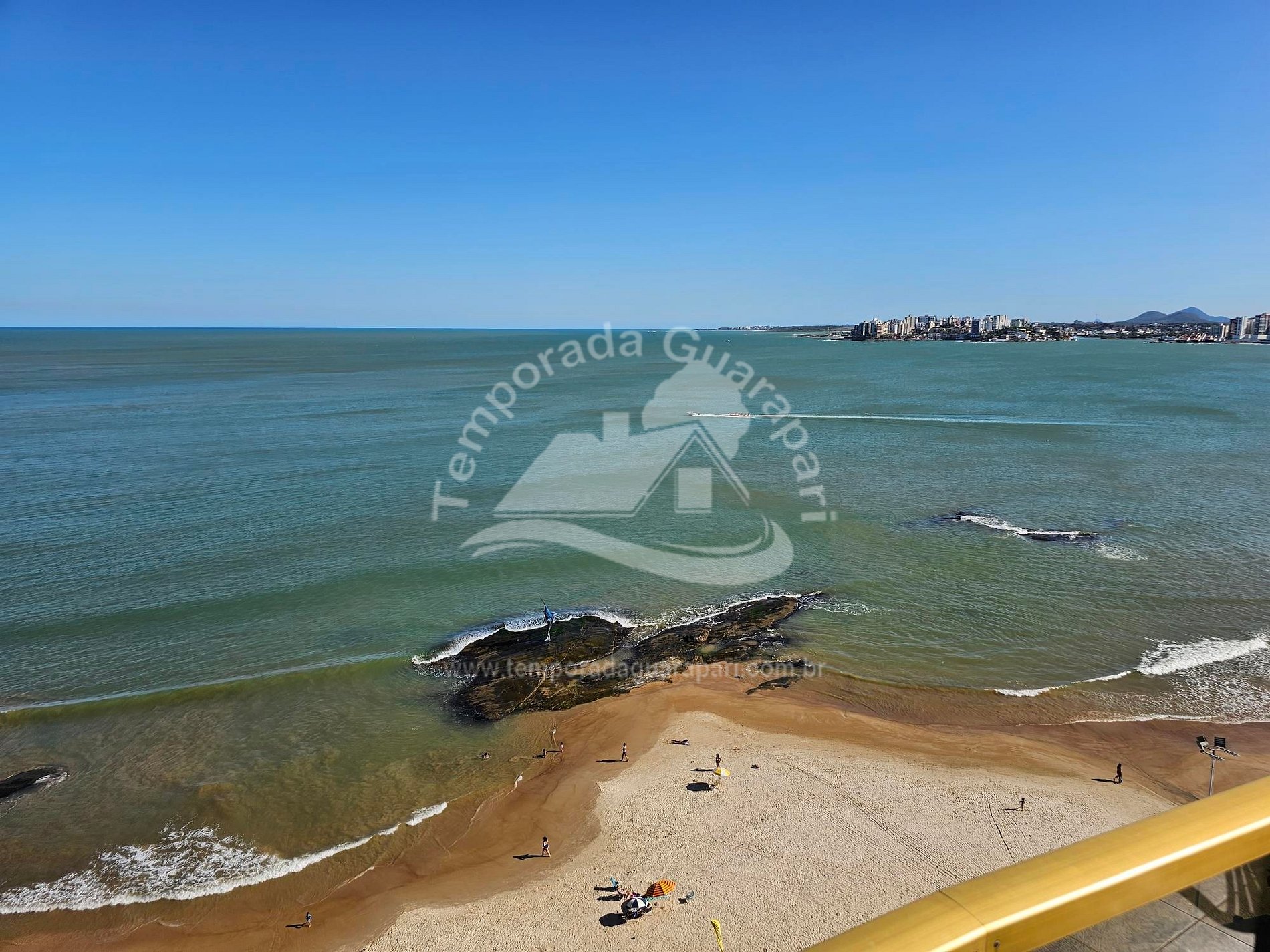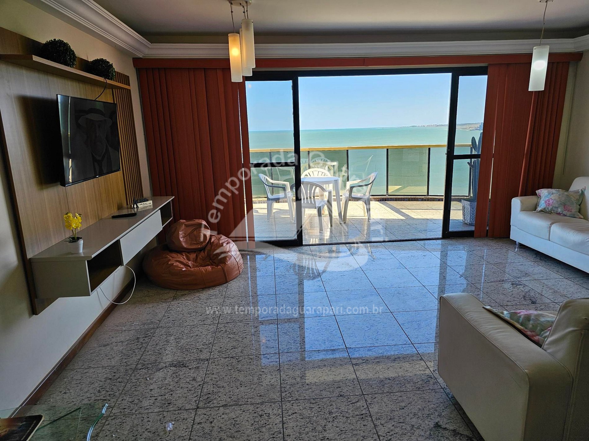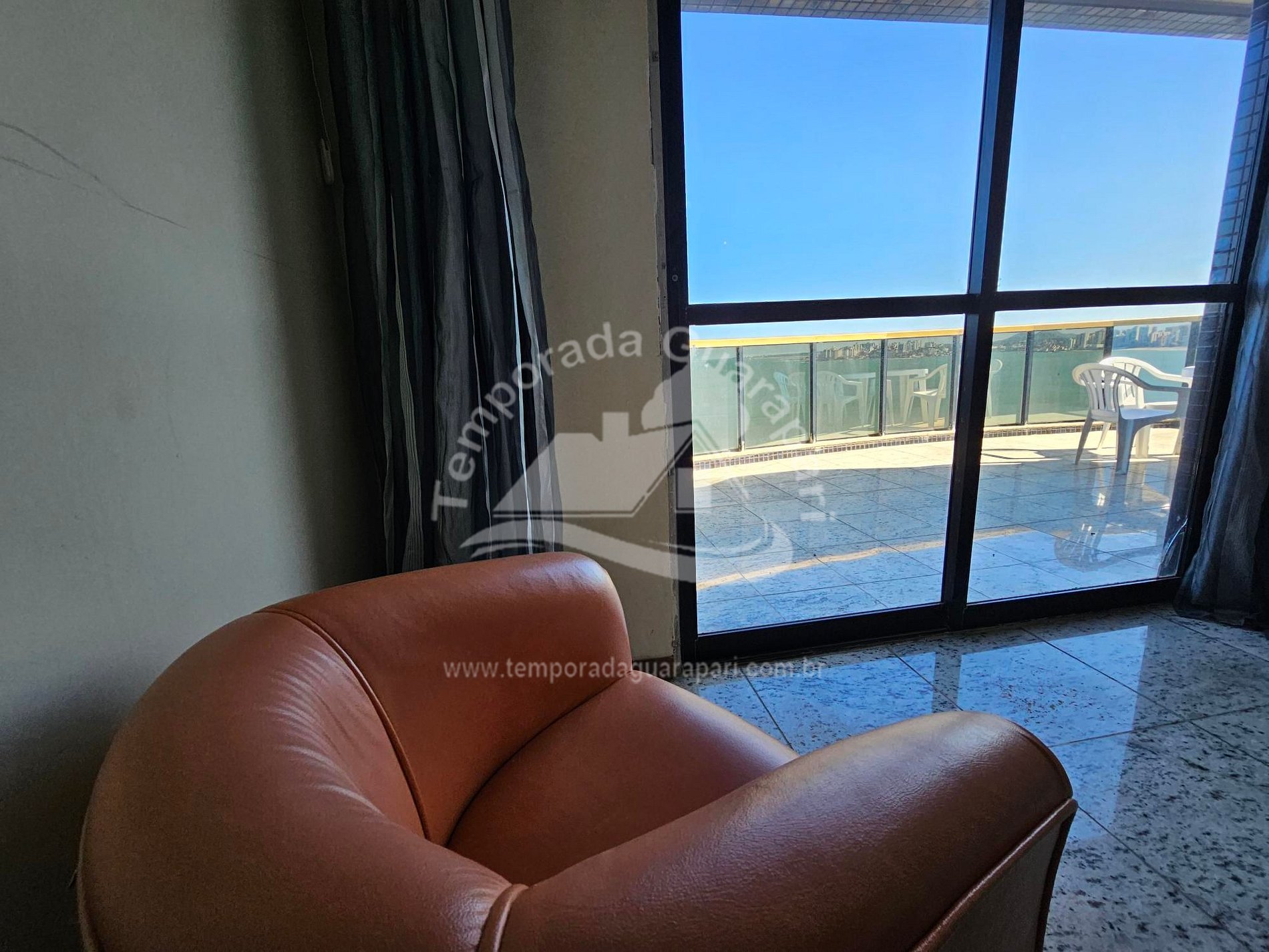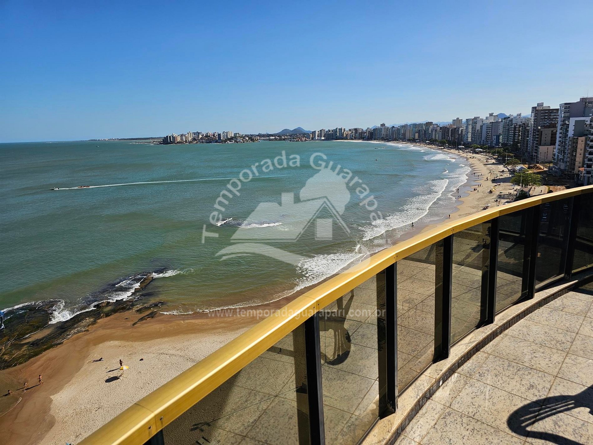 = Varanda com vista total da praia .
