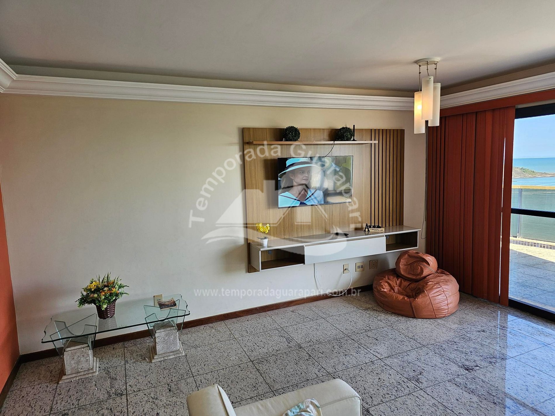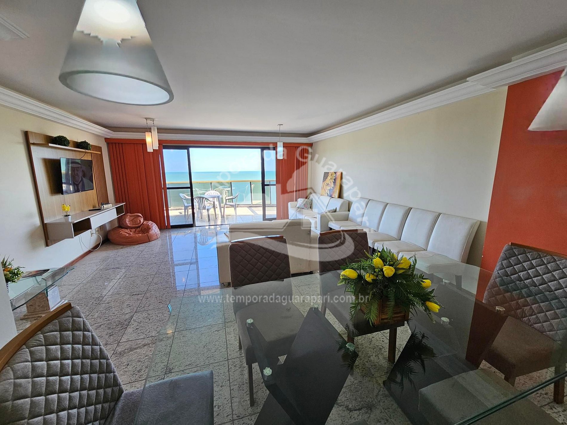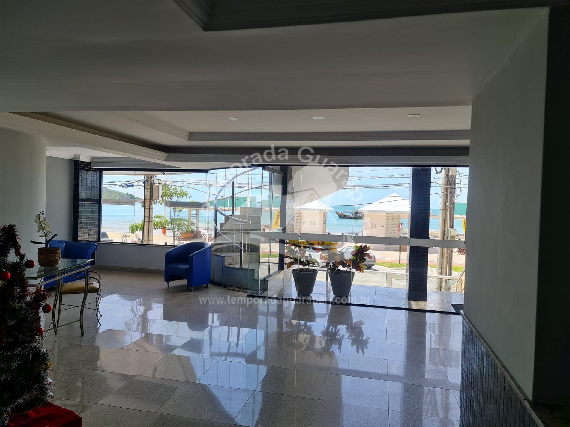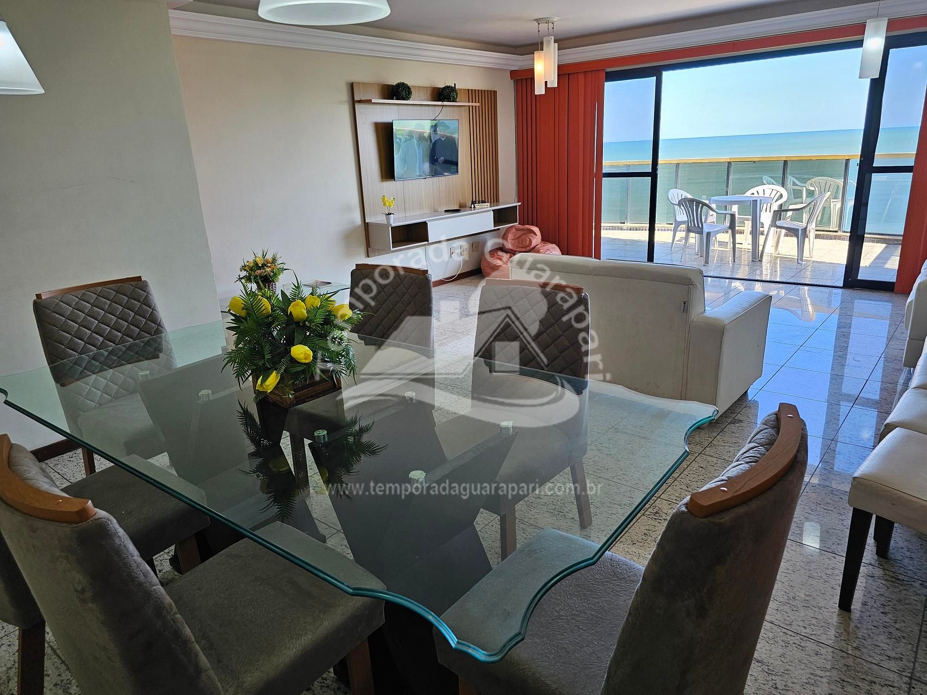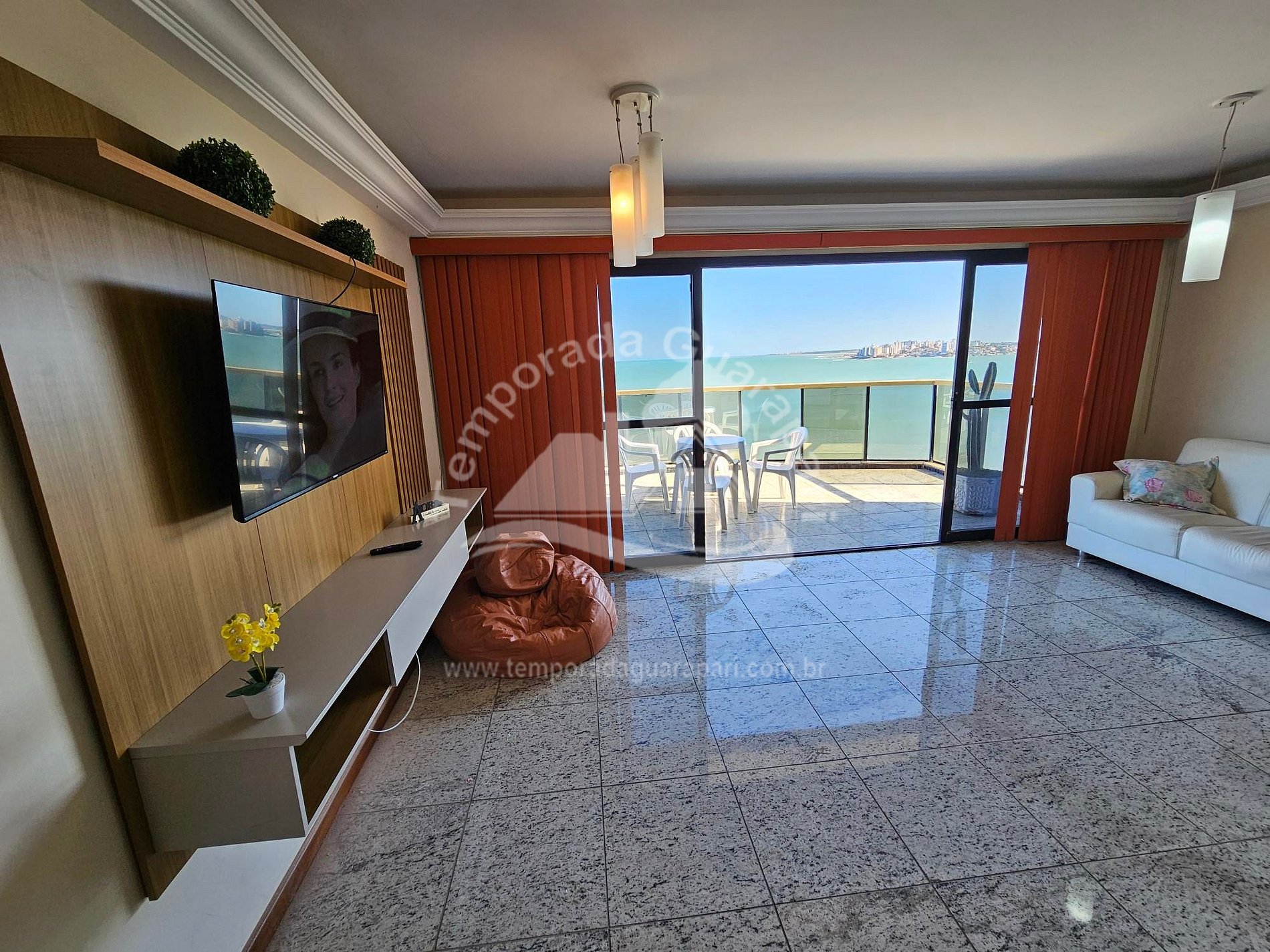 = Varanda com vista total da praia .
